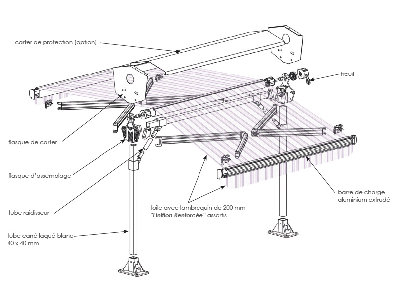Ce store à double projection sur pieds fixes ou repliables protège parfaitement vos terrasses et jardins pour équiper un espace jusqu'à 19 m2. L’offre de toile variée en couleurs vous permettra de choisir votre niveau de confort thermique et visuel. Ce store est disponible en manœuvre manivelle ou électrique. Il s’adapte à toutes vos exigences avec différentes options : automatismes vent ou vent-soleil, éclairage par leds.